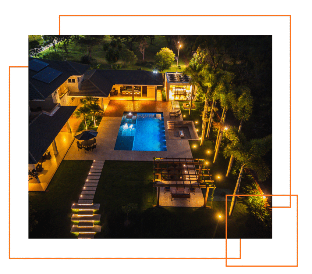 completas: projeto 3D, fundação, impermeabilização, automação, iluminação e paisagismo.